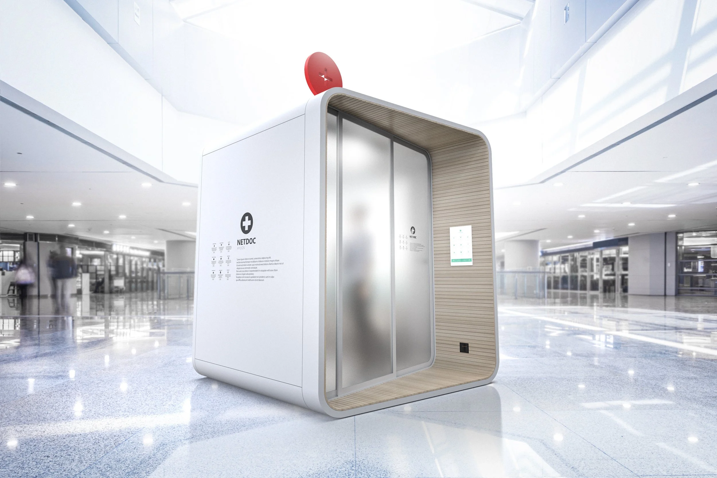 Health pod concept for urban areas. Created to bring fundamental healthcare closer and more accessible with remote doctors.